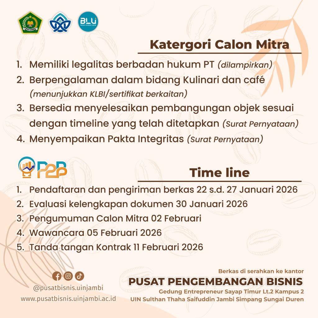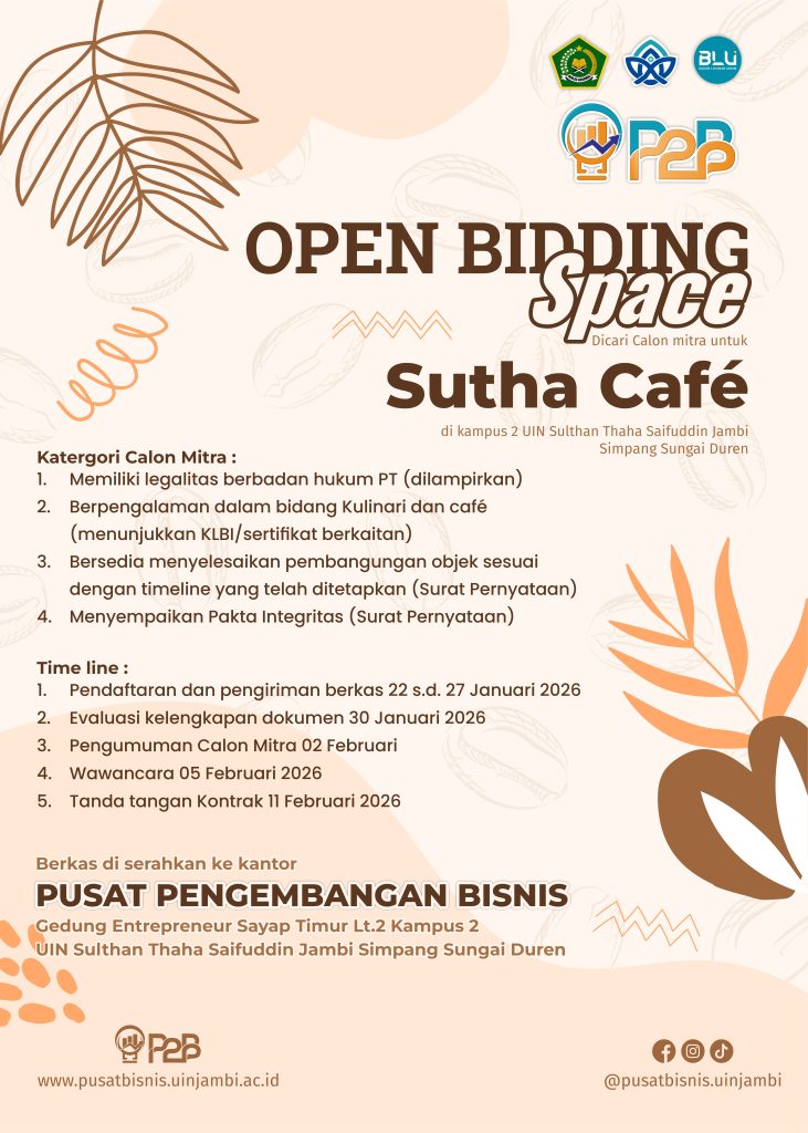 Dicari Calon mitra untuk Sutha Café di kampus 2 UIN Sulthan Thaha Saifuddin Jambi Simpang Sungai Duren